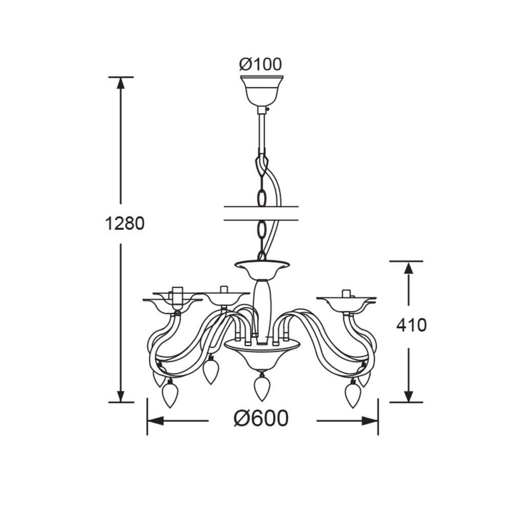 ΚΡΕΜΑΣΤΟ ΑΚΡΥΛΙΚΟ ΔΙΑΦΑΝΟ 5Χ40W Ε14 53x H43cm FIRENZE
