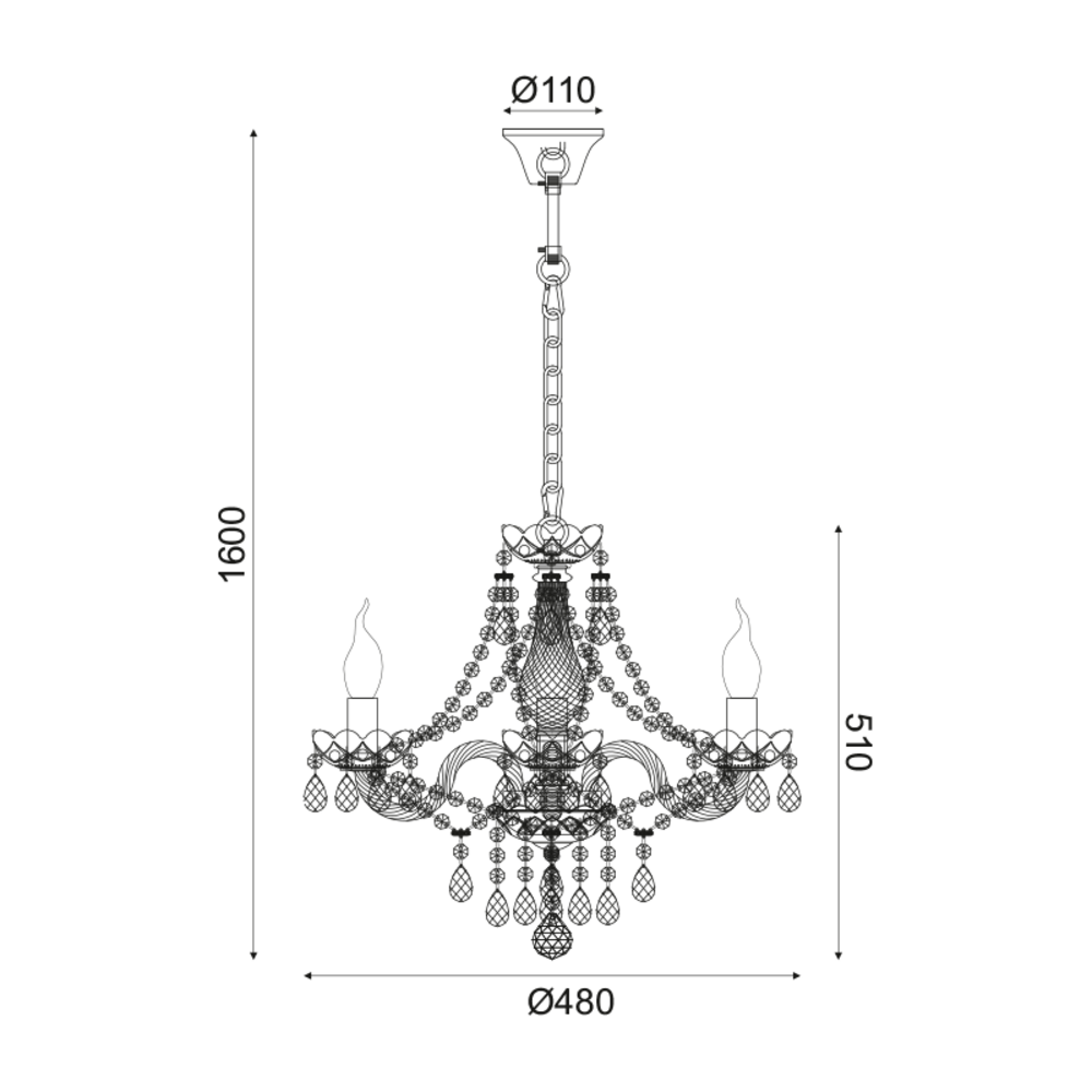 ΚΡΕΜΑΣΤΟ ΑΚΡΥΛΙΚΟ ΜΑΥΡΟ 5Χ40W Ε14 53x H43cm FIRENZE