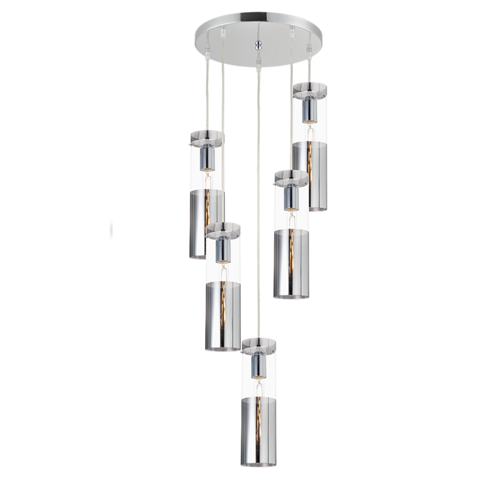 ΚΡΕΜΑΣΤΟ Φ/Σ 5ΧΕ27 ΧΡΩΜΙΟ ΓΥΑΛΙ+ΜΕΤΑΛΛΟ Φ37ΧΗ180CM DEJAVU