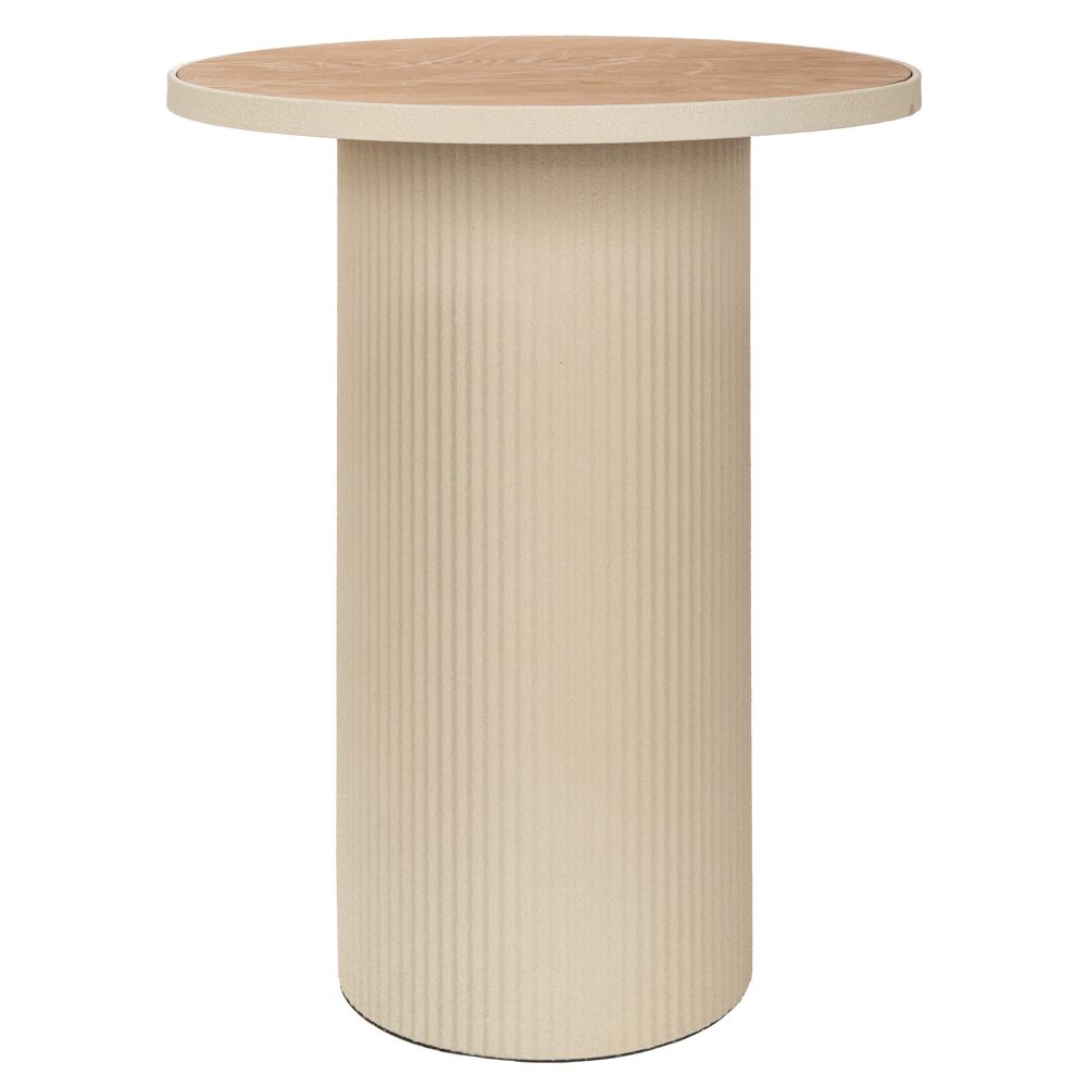 ΚΡΕΜ ΣΤΡΟΓΓΥΛΟ ΜΕΤΑΛΛΙΚΟ ΤΡΑΠΕΖΑΚΙ ΣΑΛΟΝΙΟΥ ΜΕ ΞΥΛΙΝΗ ΕΠΙΦΑΝΕΙΑ 46Χ46Χ56ΕΚ