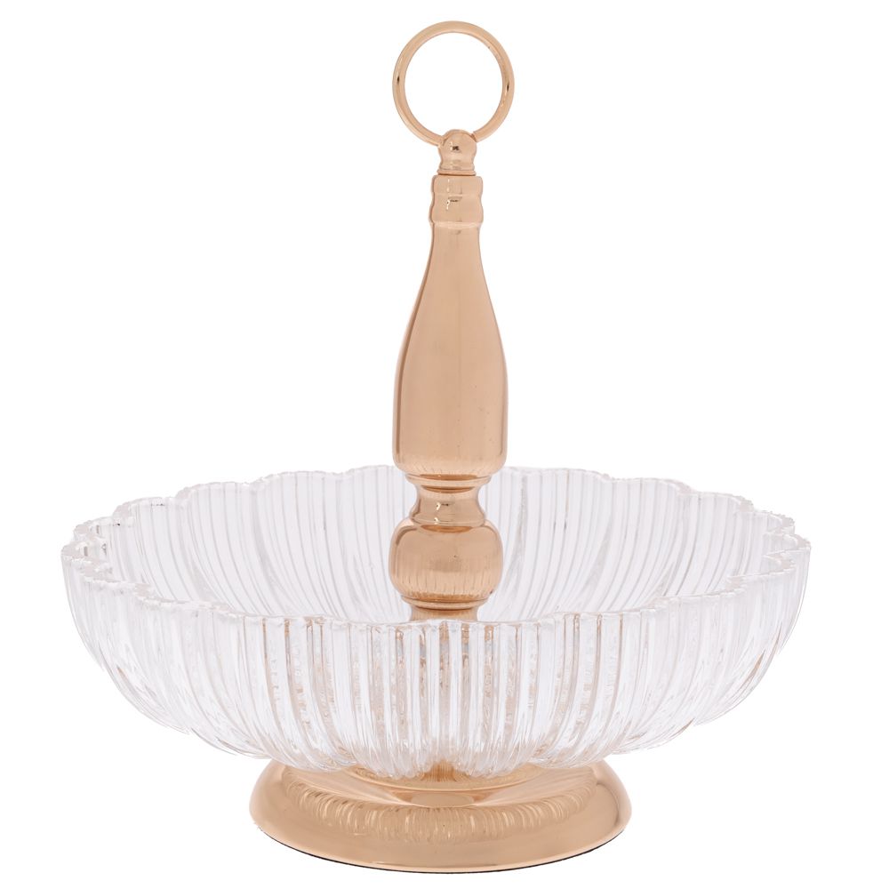 ΧΡΥΣΟ ΜΕΤΑΛΛΙΚΟ ΣΤΕΦΑΝΙ ΜΕ ΓΥΑΛΙΝΗ ΠΙΑΤΕΛΑ AND LED ΦΩΤΙΣΜΟ 40Χ25Χ43ΕΚ
