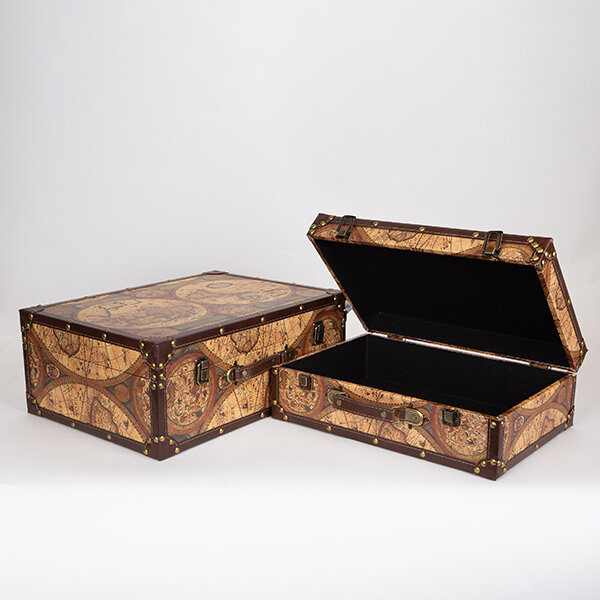 ΔΙΑΚΟΣΜΗΤΙΚΑ ΚΟΥΤΙΑ, ΞΥΛΙΝΑ, ΣΧΕΔΙΟ ΧΑΡΤΗΣ, ΣΕΤ 2ΤΜΧ , 20x14x12cm, 16x11x9cm