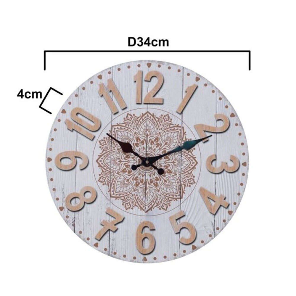 ΩΡΟΛΟΪ ΤΟΙΧΟΥ ΚΑΦΕ/ΛΕΥΚΟ ΕΦΕ ΞΥΛΟΥ ΣΤΡΟΓΓΥΛΟ ΜΕ ΓΥΑΛΙ & ΑΡΙΘΜΟΥΣ – Φ68×6.5cm 2/ΚΙΒ