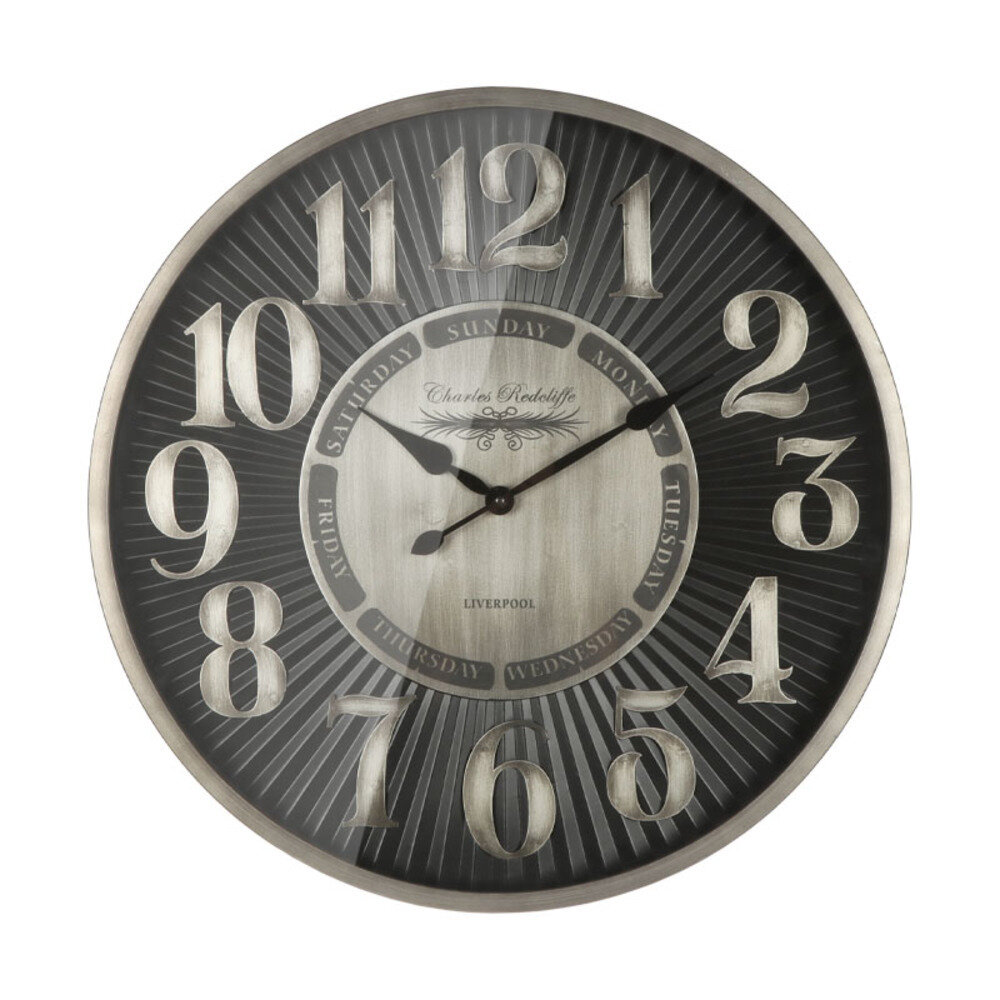 ΩΡΟΛΟΪ ΤΟΙΧΟΥ ΓΚΡΙ ΣΤΡΟΓΓΥΛΟ ΜΕΤΑΛΛΙΚΟ ΕΦΕ ΜΕ ΓΥΑΛΙ & ΑΡΙΘΜΟΥΣ – Φ61x6cm 2/ΚΙΒ