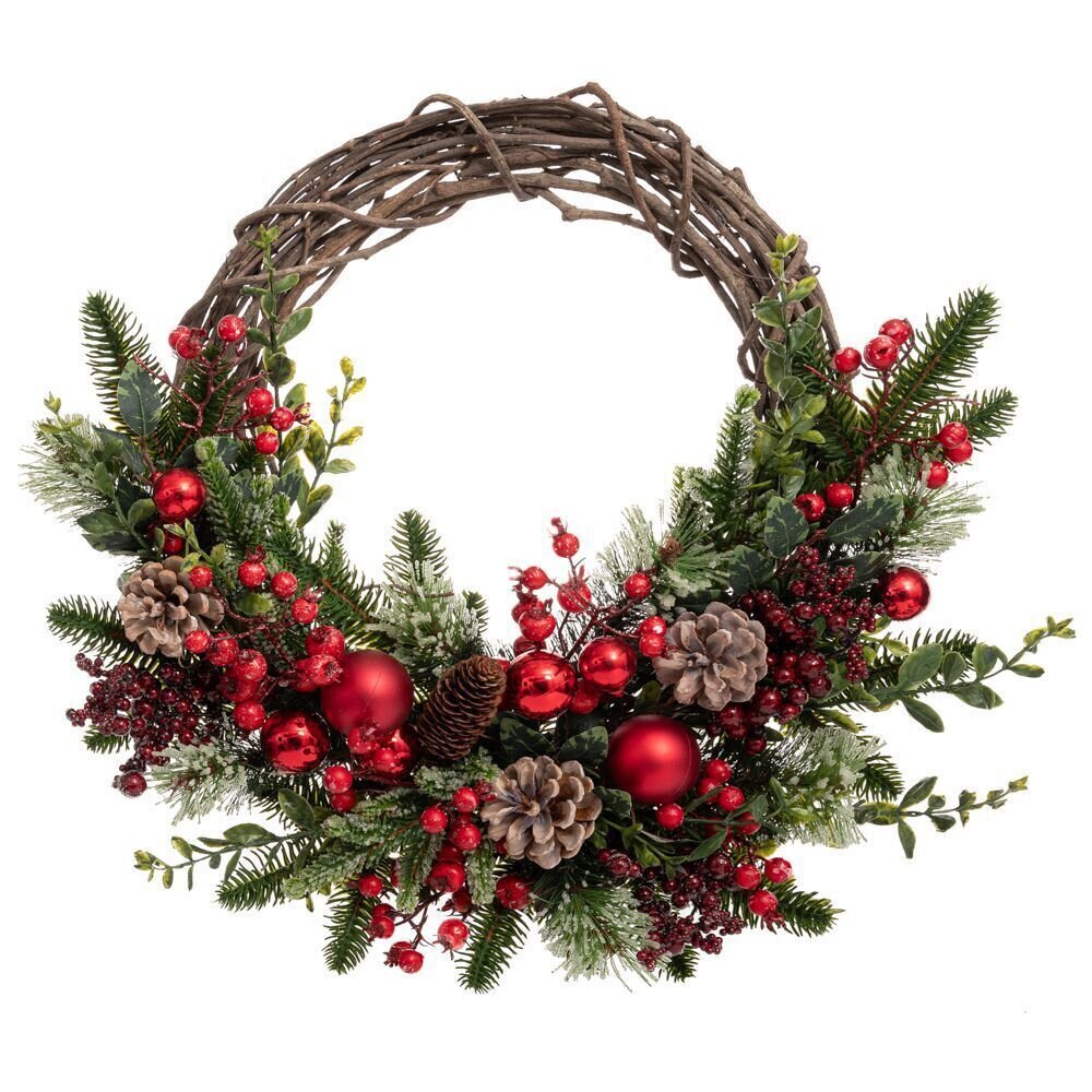 ΠΡΑΣΙΝΟ ΣΤΕΦΑΝΙ ΜΕ ΚΟΚΚΙΝΑ BERRIES ΚΟΚΚΙΝΕΣ ΜΠΑΛΛΕΣ ΚΑΙ ΠΑΓΩΜΕΝΟ ΚΟΥΚΟΥΝΑΡΙ Φ50ΕΚ
