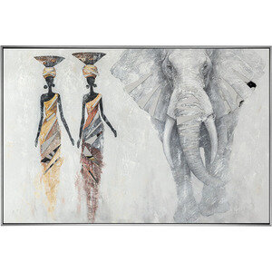 ΠΙΝΑΚΑΣ ΚΑΜΒΑΣ 2 ΑΦΡΙΚΑΝΕΣ & ΕΛΕΦΑΝΤΑΣ ΜΕ ΚΟΡΝΙΖΑ - 152.5x102.5x5.5cm 4/KIB