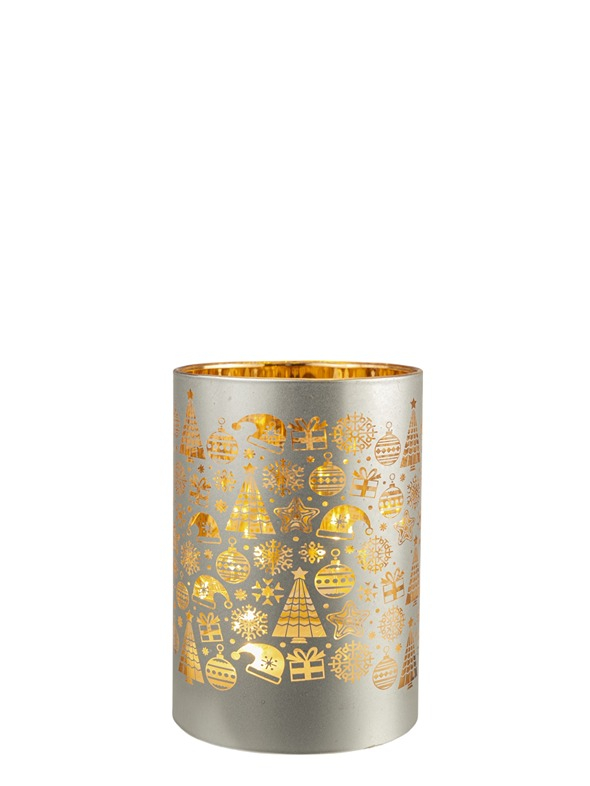 ΓΥΑΛΙΝΗ ΒΑΣΗ ΚΥΛΙΝΔΡΙΚΗ ΑΣΗΜΙ ΜΕ LED 8,5Χ8,5Χ12ΕΚ