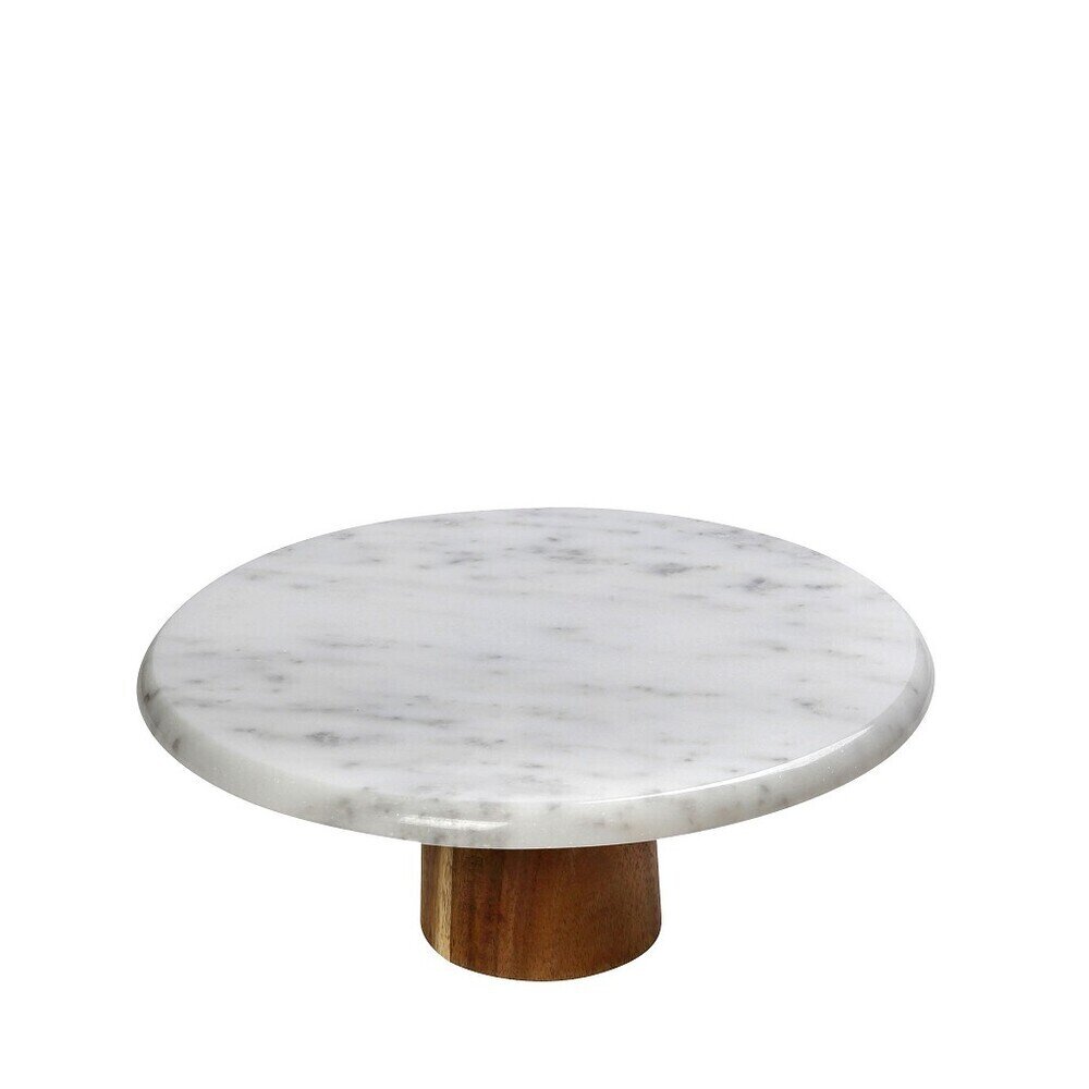 ΣΤΡΟΓΓΥΛΟ ΛΕΥΚΟ ΣΤΑΝΤ ΑΠΌ ΜΑΡΜΑΡΟ ΜΕ ΞΥΛΙΝΟ ΠΟΔΙ ΑΚΑΚΙΑΣ 30×30Χ10ΕΚ