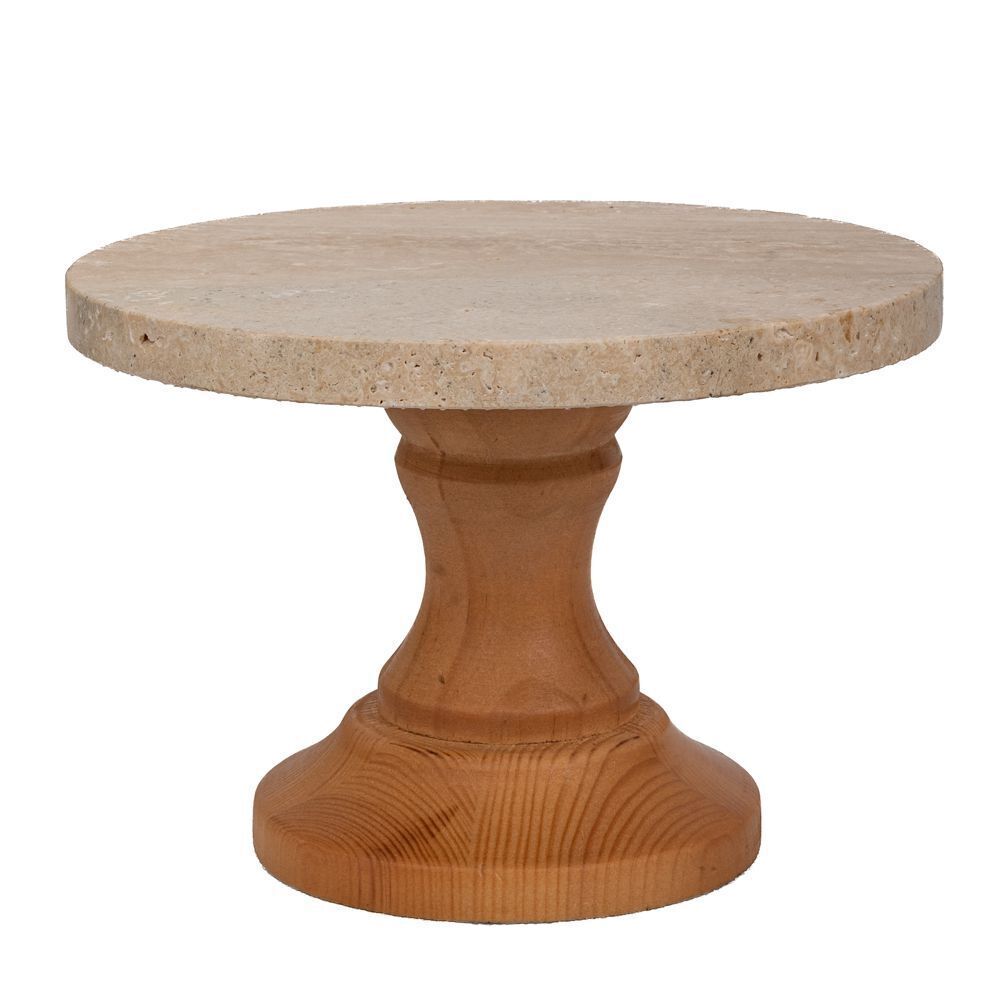 Ξύλινος στρόγγυλος δίσκος ιδιαίτερα κομψός, με ξύλινο πόδι και βάση από μάρμαρο.