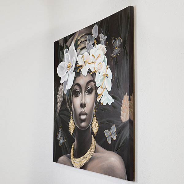 ΠΙΝΑΚΑΣ ΣΕ ΚΑΜΒΑ, ΓΥΝΑΙΚΑ, ΜΕ ΛΟΥΛΟΥΔΙΑ ΣΤΟ ΚΕΦΑΛΙ,ΜΑΥΡΟ- ΛΕΥΚΟ-ΓΚΡΙ 100x100x3cm