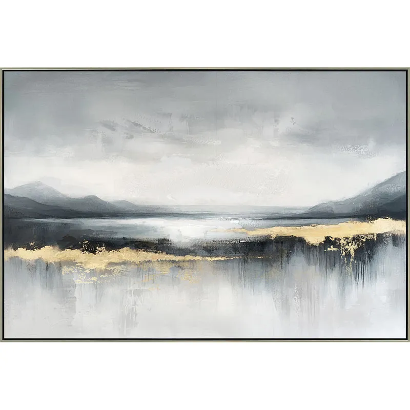 ΠΙΝΑΚΑΣ ΚΑΜΒΑΣ ΑΣΠΡΟΜΑΥΡΟ/ΧΡΥΣΟ ΛΙΜΝΗ & ΒΟΥΝΑ ΣΕ ΚΟΡΝΙΖΑ – 122.5×82.5×3.5cm 6/KIB