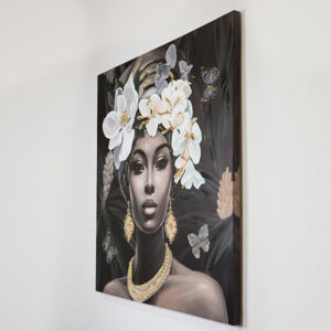 ΠΙΝΑΚΑΣ ΣΕ ΚΑΜΒΑ, ΓΥΝΑΙΚΑ, ΜΕ ΛΟΥΛΟΥΔΙΑ ΣΤΟ ΚΕΦΑΛΙ,ΜΑΥΡΟ- ΛΕΥΚΟ-ΓΚΡΙ 100x100x3cm