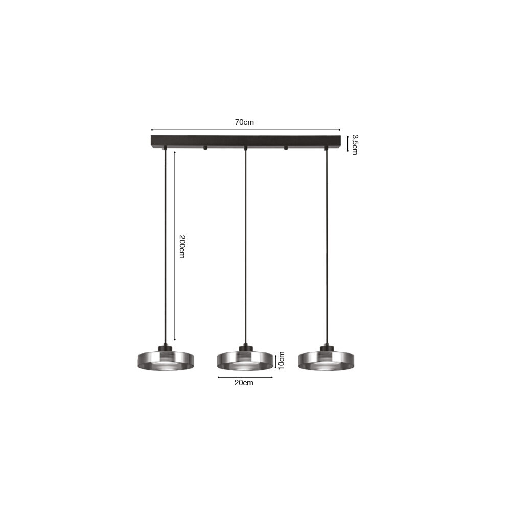 Inlight Κρεμαστό φωτιστικό LED απο μαύρο μέταλλο και φιμέ γυαλί, 70x200cm, 3CCT (Θερμό- Φυσικό- Ψυχρό Φως), Φωτεινότητα 3960LMκαι 3x12W (4075-3R-Black/Smoky)